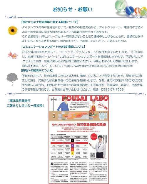 分譲地管理に関しまして、ご意見?ご要望等がございましたら