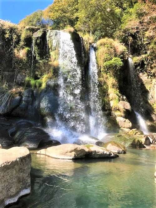 ゆっくりと散策しながら進(jìn)むと滝の音が