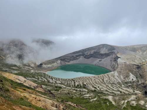 やっと念願(yuàn)のお釜を見(jiàn)ることができました ガスがかかっていましたが、お釜の寫(xiě)真を撮るときに霧が晴れました 刈田宮神社奧宮で色々なことを祈願(yuàn) 帰路は、エコーラインを山形が側(cè)に降り、辛みそラーメン 美味しかったです (山形はラーメン消費(fèi)量日本一です) 【蔵王のお釜】 蔵王刈田岳、熊野岳、五色岳の3峰に抱かれた?jī)倚韦位鹂诤?br /> 釜狀なのでお釜と名前がつきました。 太陽(yáng)光線の當(dāng)たり方で様々に色を変えるため 『五色湖』と呼ばれています。 湖面はエメラルドグリーンの水をたたえ、荒々しい火口壁と対比して 神秘的な雰囲気です。 今まで26回の噴火を繰り返し最近は、 明治28年2月15日に噴火しています。 湖水は強(qiáng)酸性のため生物は生息できません。 特殊雙溫水層で世界でも例を見(jiàn)ない湖です。 狩野enjoyシリーズ今後もご期待ください →情報(bào)提供もお待ちしております