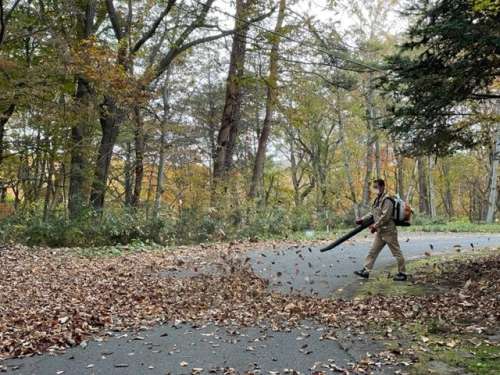管理員さんが落ち葉を集めていました。