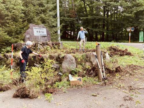 蔵王の植生にあった植物をオーナー様のお宅から移植をしていきます