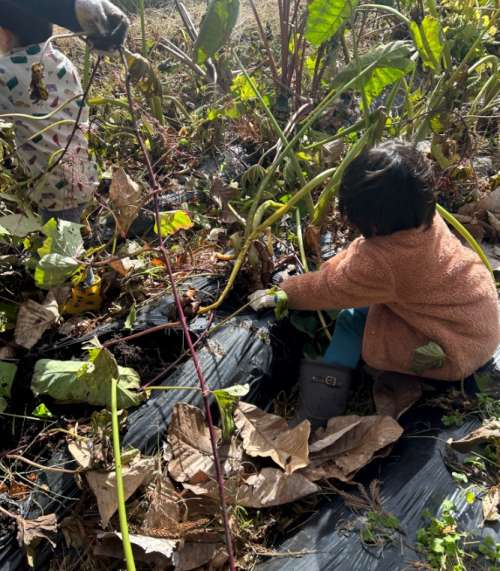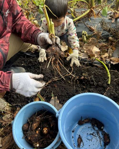 そんな中サロンの敷地內にある畑でオーナー様とお子さんとで一緒に芋掘り體験をしました