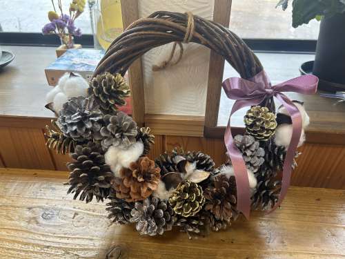 このまつぼっくりを使ってクリスマスリースをつくってみました