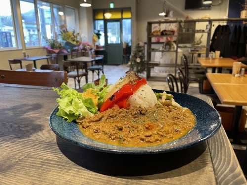 きさくなご夫婦がお出迎えしてくれてランチの鹿と豬のキーマ風カレーと鹿肉麻婆をいただきました