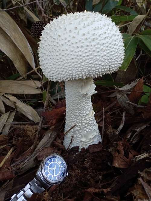 【真っ白のまん丸キノコ】下の腕時(shí)計(jì)と比較してもかなり大きいです