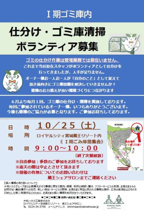 毎月1回分譲地ごとに仕分け?清掃を行っております。