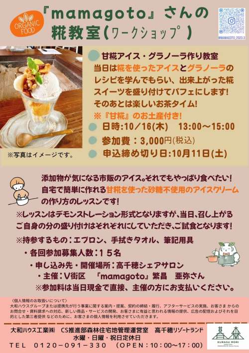 『甘糀アイス?グラノーラ作り』教室開催です!