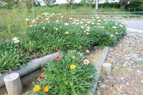 花壇の1段目?2段目は色とりどりのガザニアが華やかです![]()
