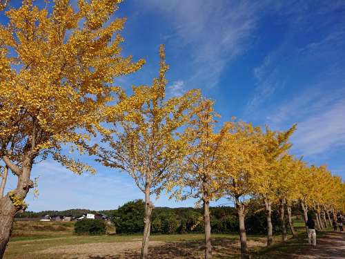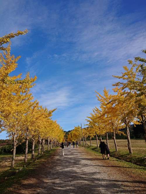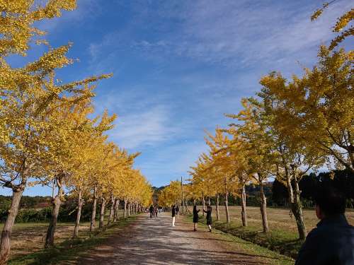 紅葉スポットとして知られる寶達志水町の「イチョウ並木道」