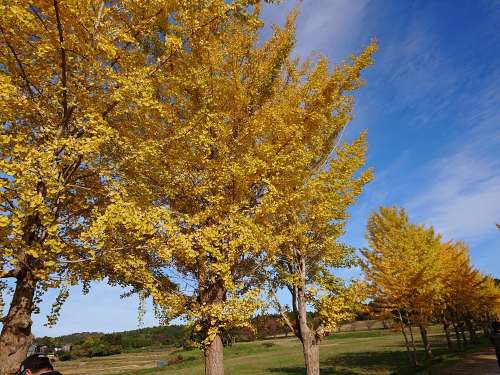 秋晴れの青い空とイチョウの黃金色が映えて、絶好の撮影日和でした