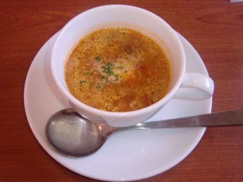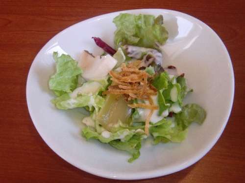 早速出て來ました、サラダとスープです