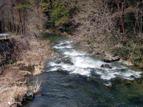 米內川はヤマメやイワナの住む渓流として有名だそうで、漁業権も設定されていないこともあり休日には多くの釣り客が訪れるそうです