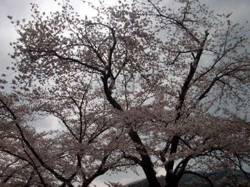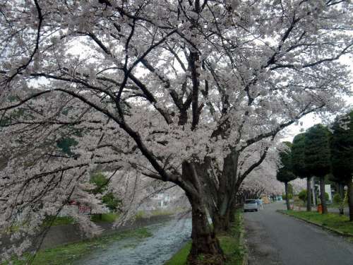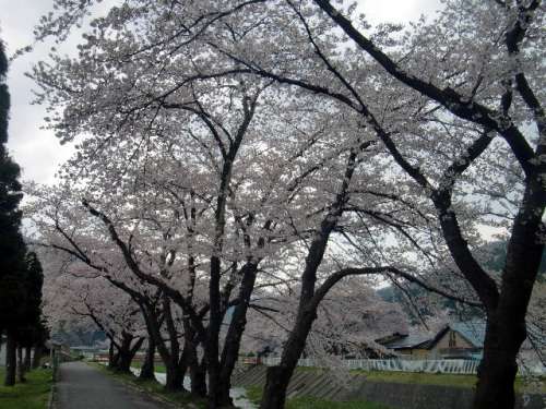 川の岸辺に桜が並んで咲いている美しい姿を見ていると、涙が流れて來ます。