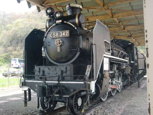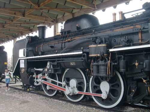 ようやく、席が空き、念願が葉い思う存分座ります「う~ん!大満足」です、機関車を室內側から眺め感動しています