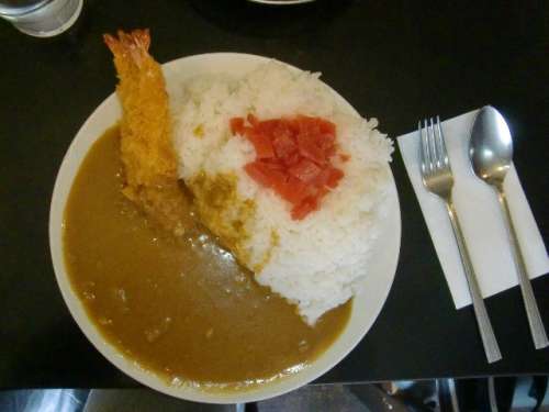スタッフは「エビカレーはカツカレーよりは“盛り”は少ないですよ~」と言ってくれました