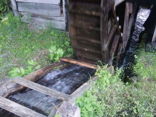 水量が豊富なのか水車はいいリズムで回り続けています