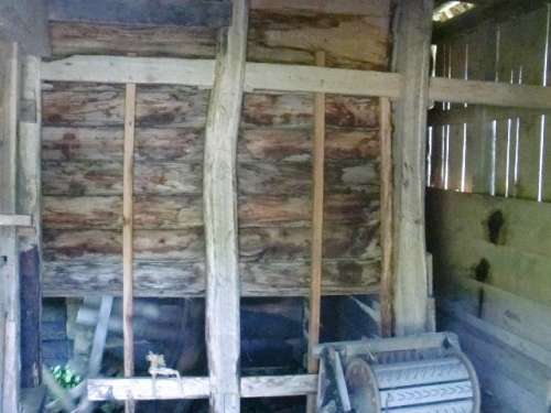 水車小屋の中に入ると??水車を回している仕掛けが規則正しく回転しています