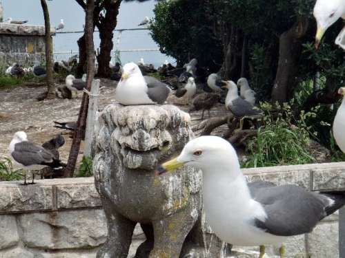 やっとの事で階段を登り切ります、境內(nèi)も“ウミネコ”でいっぱいです
