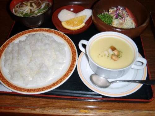 すヰとん(すいとん??巖手の郷土料理)が有名で、宮沢賢治は“春と修羅  第三集”の詩の中で、『停留所にて“すヰとん”を喫す』で『雲を食べているようなものだ』と表現しているそうです