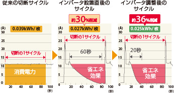 インバータを設置するだけでなく、周波數(shù)減速時間を設備ごとに細かく調整し、省エネ効果を最大化しました。