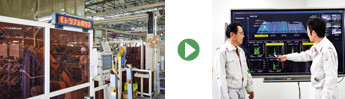 2013年度は奈良工場にも導入し、全員參加型の省エネ活動を推進しています。エネルギーの消費狀況や設備異常などがリアルタイムにわかりやすく大畫面に表示され、目を向けた人が異変に対し、すぐにアクションを起こすことができます。