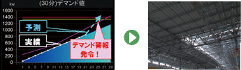 「D's FEMS」は過去データや電力使用狀況からデマンド予測をリアルタイムで行います。予測が設定値を超えると、関係者へ自動メールするだけでなく、不要不急の照明を自動消燈したり、影響の小さい設備出力を自動調整します。