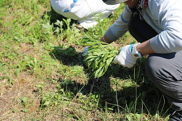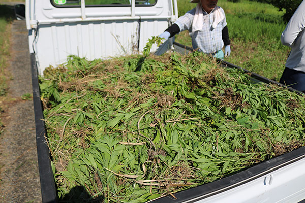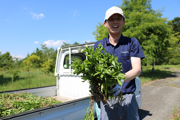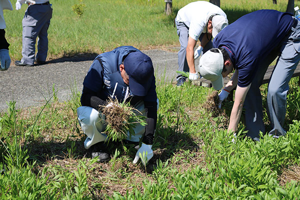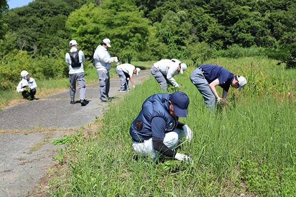しっかりと根を張るセイタカアワダチソウを、みんなで腰をかがめて引き抜き、軽トラックへ積み込んでいきます。作業を終えると、あたりはすっきりと明るくなりました。參加者の一人は「體を動かすと気持ちいいですよね。活動に參加すると、工場のみんなとの一體感や団結力を感じられます」と話します。