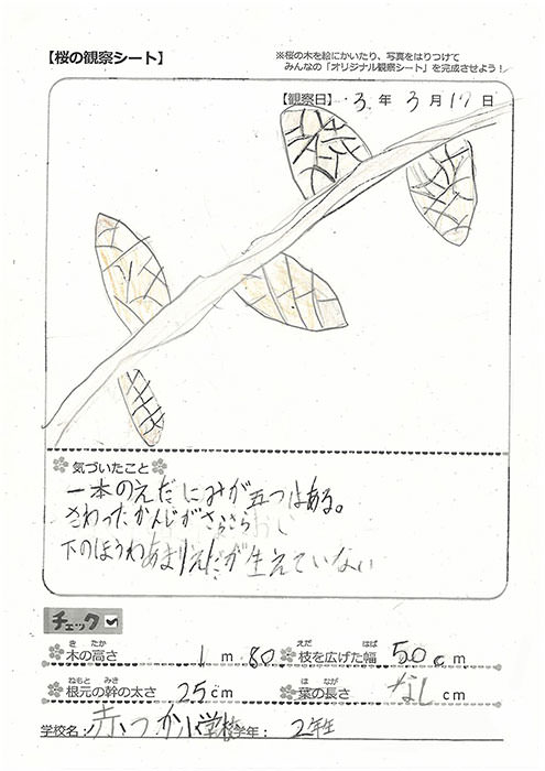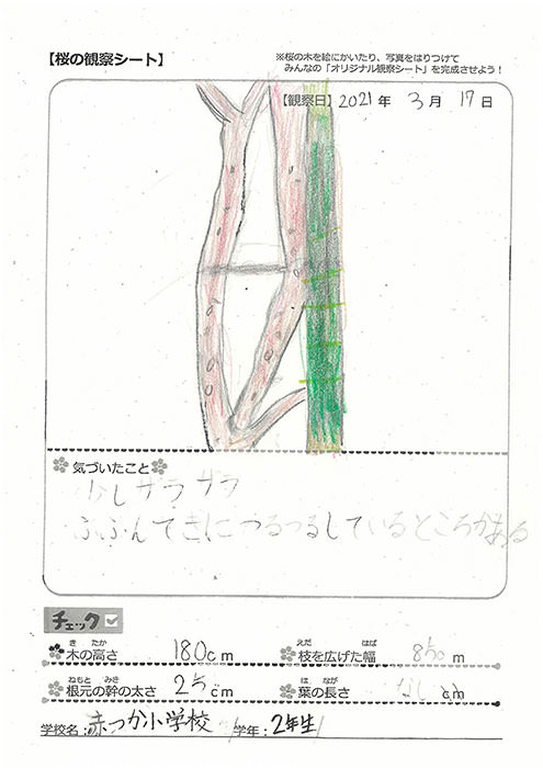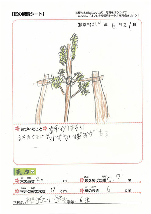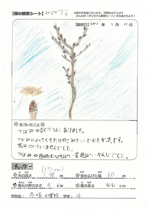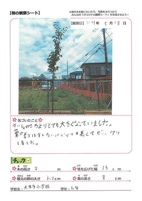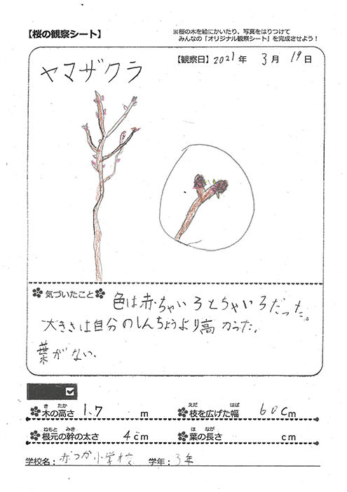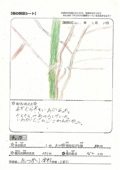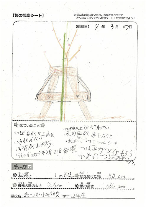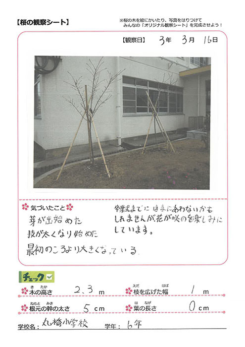 桜プロジェクトを実施した小學校?幼稚園で植えた桜の観察會を実施しています。観察した桜を見て、みんなで桜の成長を共に楽しもう!!