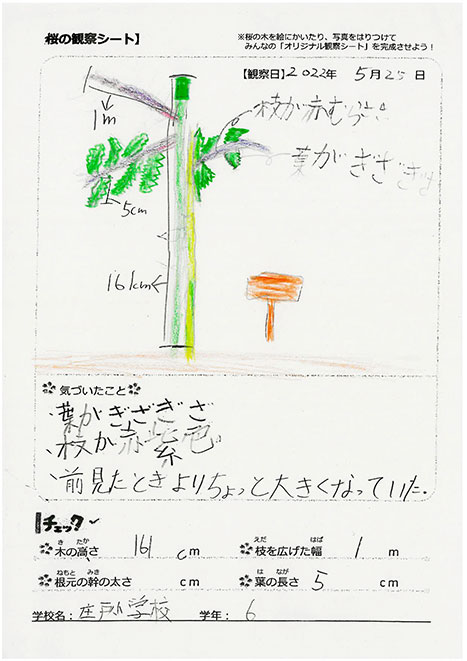 桜プロジェクトを実施した小學校?幼稚園で植えた桜の観察會を実施しています。観察した桜を見て、みんなで桜の成長を共に楽しもう!!