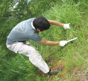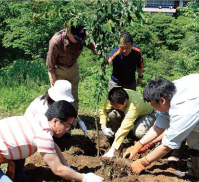 參加対象を當(dāng)社グループ社員全體とその家族に広げて、苗木周辺の雑草を刈り取る下草刈りを?qū)g施
