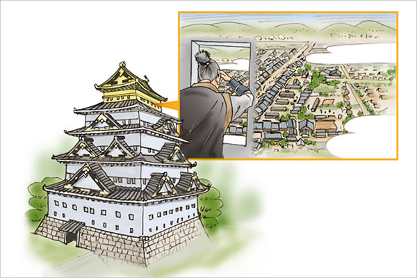 戦國時代を過ぎ、平和な時代に不要となった天守閣を設けるなど、モニュメンタルなものをつくることで民衆の心を支配するという手法もとられた。