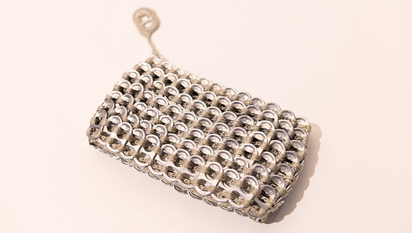 それからリサイクルされたものを買ったり古著を買ったり、もともとあったものに付加価値を付けて新しい製品を作る「アップサイクル」のものを買ったりするのも、新たに資源を消費しないという點で1つ目の「環境」に配慮したエシカル消費と言えます。今私が持っている名刺入れ(寫真)はアルミ缶のプルタブでできているのですが、こういうものを買うのがアップサイクルの一例です。
