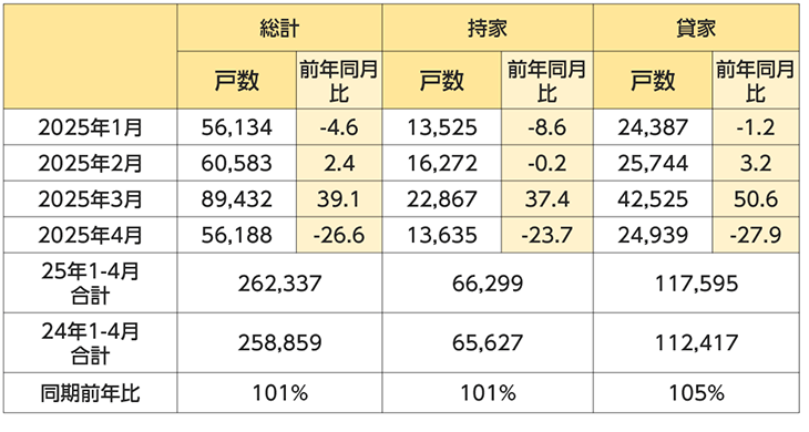 図1:2025年1-4月新設(shè)住宅著工戸數(shù)