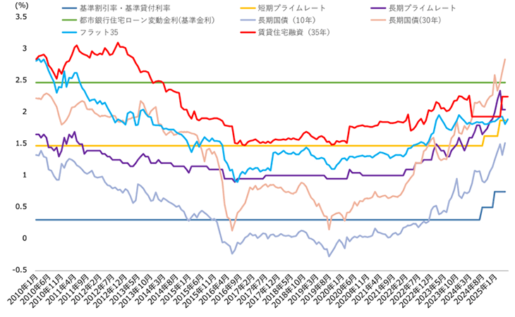 現(xiàn)在多くの方が利用する変動金利ですが、この変動金利(短期金利)に影響があるのが政策金利です。政策金利は、日銀が物価の動向を見定めて、物価を安定させるために、政策的に操作する金利です。政策金利は2025年1月末に0.5%となって以降、橫ばいとなっています。この間(1月以降)も物価上昇は2%臺前半が続いており、年內(nèi)にも0.25%~0.5%程度(=1~2回)の利上げが行われるという見方が大半でした。しかし、4月に入って以降の米國政権による関稅政策(いわゆるトランプ関稅)などが世界経済を大きく揺さぶることになり、この先の経済動向の見通しが立てにくい「不確実性が強い」?fàn)顩rとなっています。それにより、日銀展望レポートでは、この先の物価上昇の見通しは下方修正されています(5月1日公表の日銀レポート)。このようなことから、日銀の意向とすれば政策金利は多少上げる方向にあるようですが、政策金利の上昇が年內(nèi)に行われるかは不透明な狀況(=上がらない可能性もある)といえるでしょう。そうだとすれば、賃貸住宅都市も積極姿勢が続くと思われます。