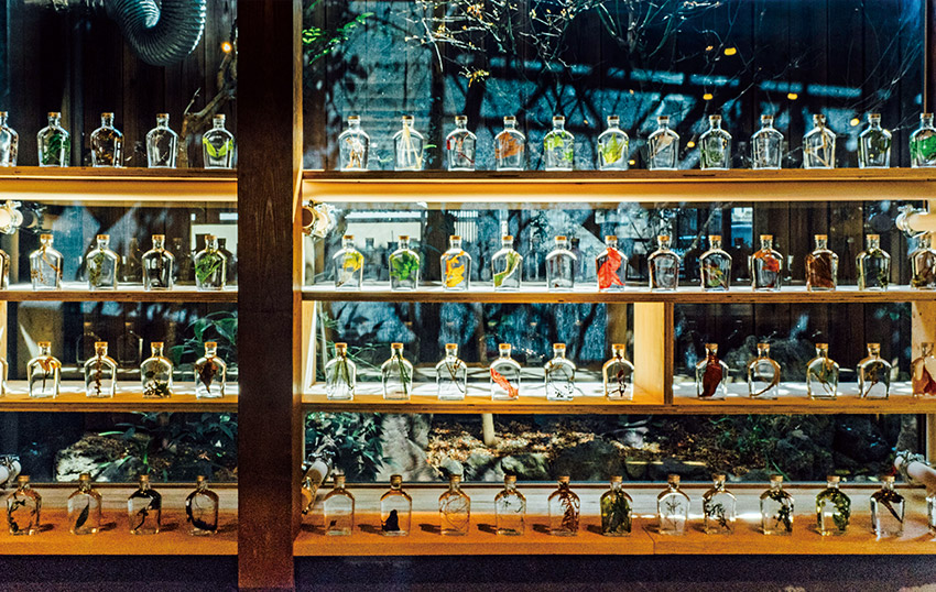 京都の街で採集した植物片を瓶詰めにして展示した、2018年のエキシビション「百の植物片」
