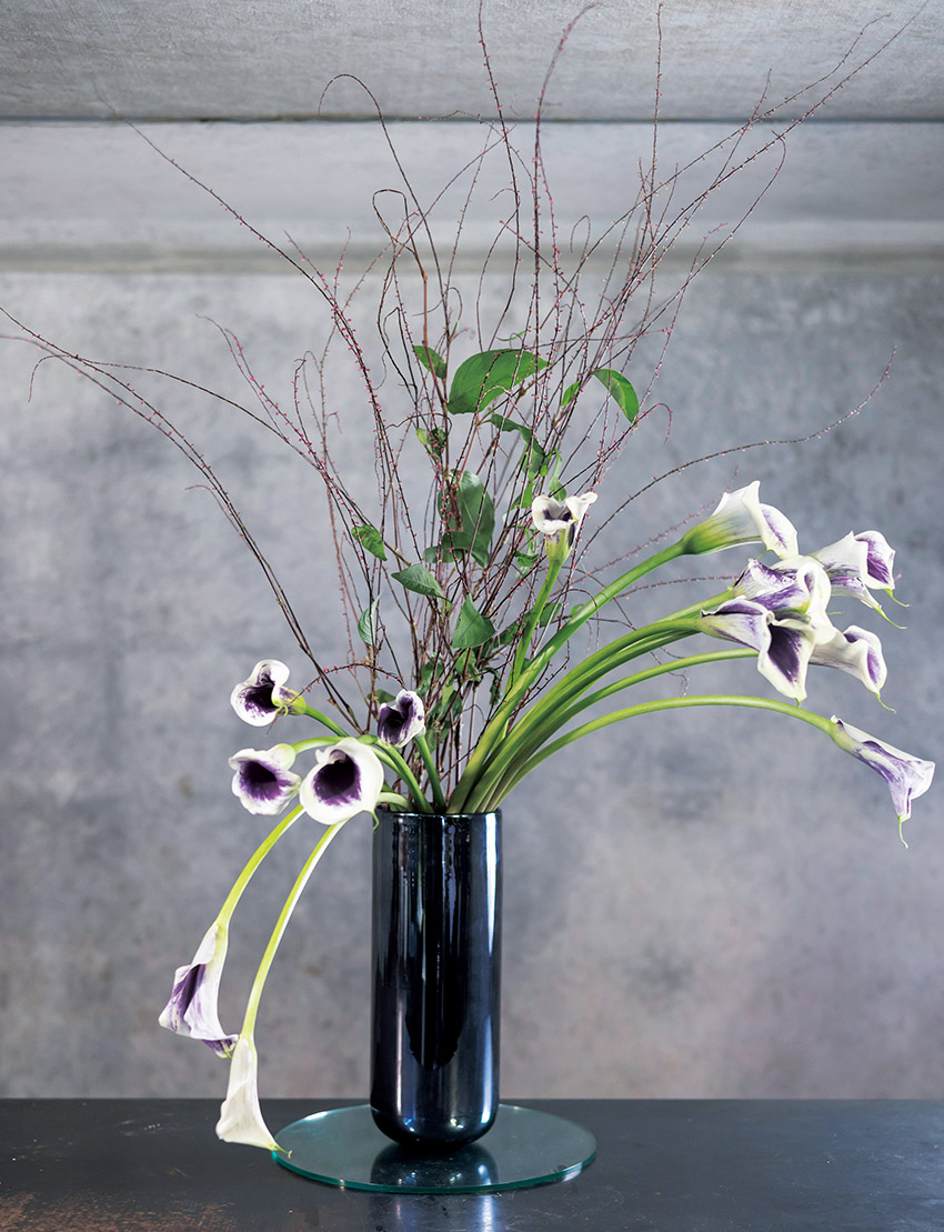 「プロジェクトマネジメントをする感覚なんですよ」と前田さん。頭の中にモダンデザインの全體像を描きながらそれぞれの花の役割を決め、個性が輝く場所を與えていきます。必ずしも花の正面を見せる必要はなく、あえて葉や莖や花の裏側の表情を見せることも。一輪挿すごとにその角度や向きで大きく変わる印象を受け止め、美しい輪郭線を見いだすことを目標に手を動かし続けます。「これで良い、ではなく、これで終わりと判斷できた瞬間がアレンジの完成です」