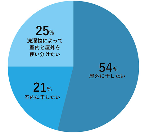 次に多かったのが「洗濯物によって室內(nèi)と屋外を使い分けたい」(25%)というハイブリッド型の意見(jiàn)です。「日常的には外干し。夜や雨の日、花粉の季節(jié)は部屋干し」「ラグやシーツ、厚手のトレーナーなどは外干し。それ以外は乾燥機(jī)」「日焼けが気になるデリケートな素材や下著は部屋干し。それ以外は外干し」というように、衣類の種類や生活狀況、天候條件などに応じて柔軟に対応したいと考える方が全體の4分の1を占めました。