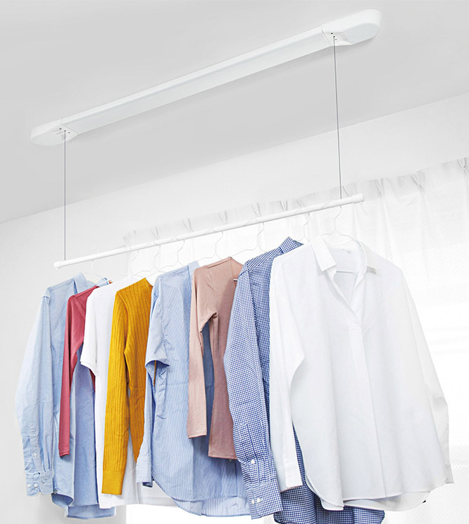 • 3階のベランダまで干しに行くのは大変なので、リビングに吊り下げ式の物干しが欲しい。エアコンの風(fēng)を活用すれば、省エネ&加濕にもなりそう