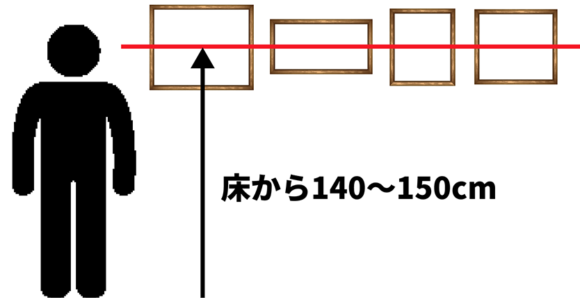壁に絵を飾るときの高さのイメージ