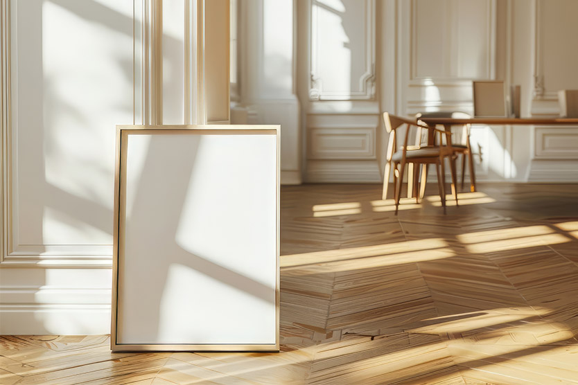 9. 壁に立てかけたり床に置いたりして絵を飾る