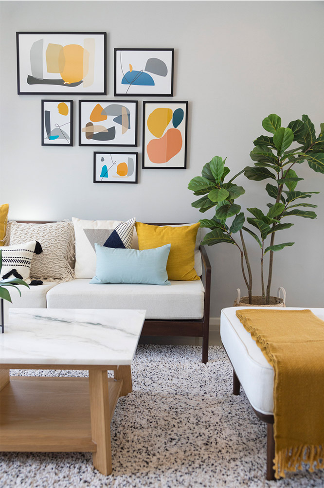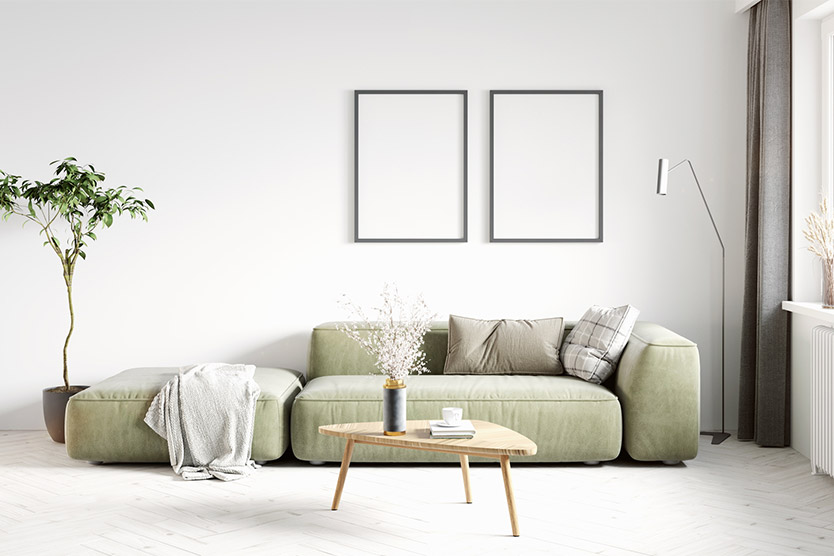 1. リビングのソファ上部の壁に絵を飾る