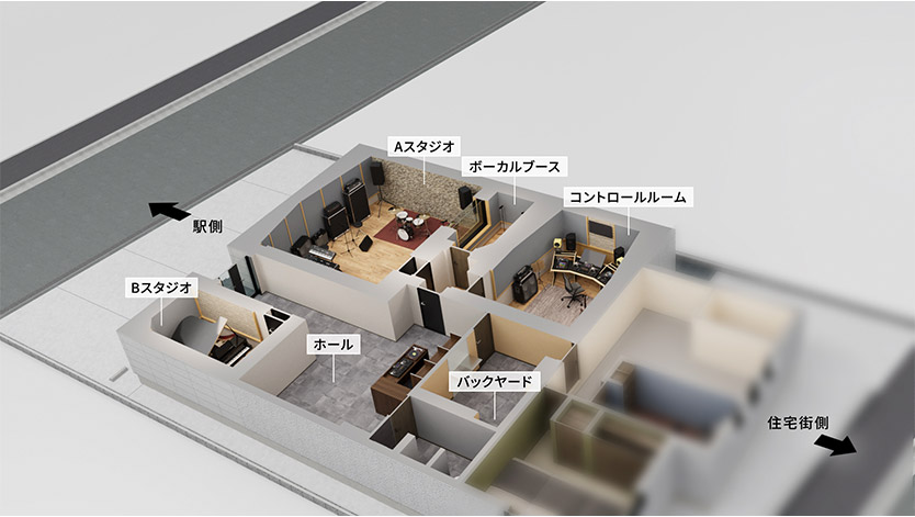 しかし、このまちには本格的な音楽スタジオがありませんでした。そこでKさまは「せっかくスタジオを建てるなら、自分やアーティスト、仕事仲間だけじゃなく、誰でも気軽に來られる商業スタジオをつくろう」と考えられました。