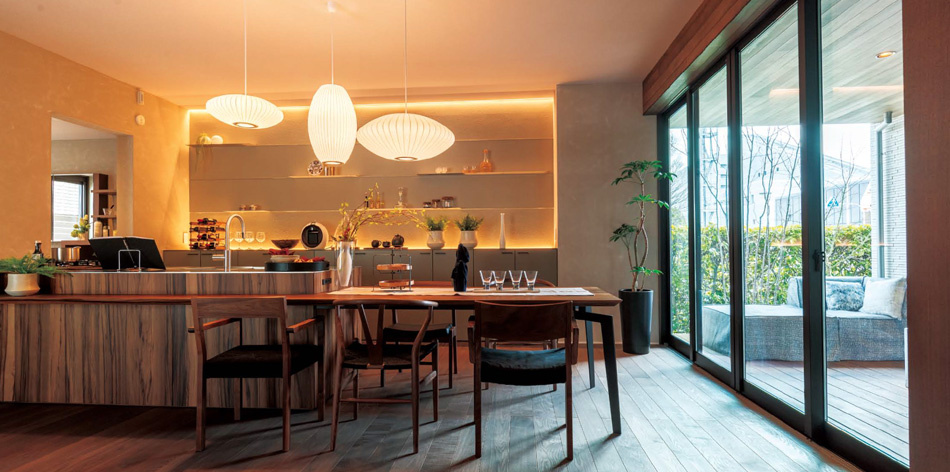自然素材の魅力のひとつは、唯一無二の空間をつくり出せること。ナチュラルな色むらやゆがみも味わいとなり、新築時から落ち著いた雰囲気になります。経年変化でさえも趣深く感じ、より住まいに愛著を持てることでしょう。例えば、仕上げに草木染を用いた無垢の床材は、自然な風合いが強調され、木の溫もりをより一層楽しめます(上寫真)。