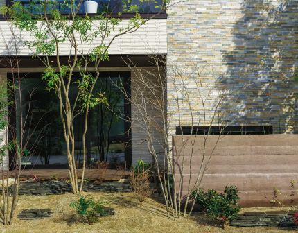 また、版築※の門扉をアクセントとして設置するアイデアも。年月を経るにつれ味わい深く表情を変えていきます。素材の変化とともに、価値の高まりも感じられます。
