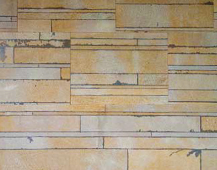 石をカットした際にできる「耳」の部分を寄せ集め、レンガのように並べ接著した後にスライスしたユニークな素材です。廃材からできたとは思えないほど意匠性が高く、印象的な空間を演出できます。ひと味違った存在感を放ちながら、和室にも洋室にも違和感なくとけ込みます。